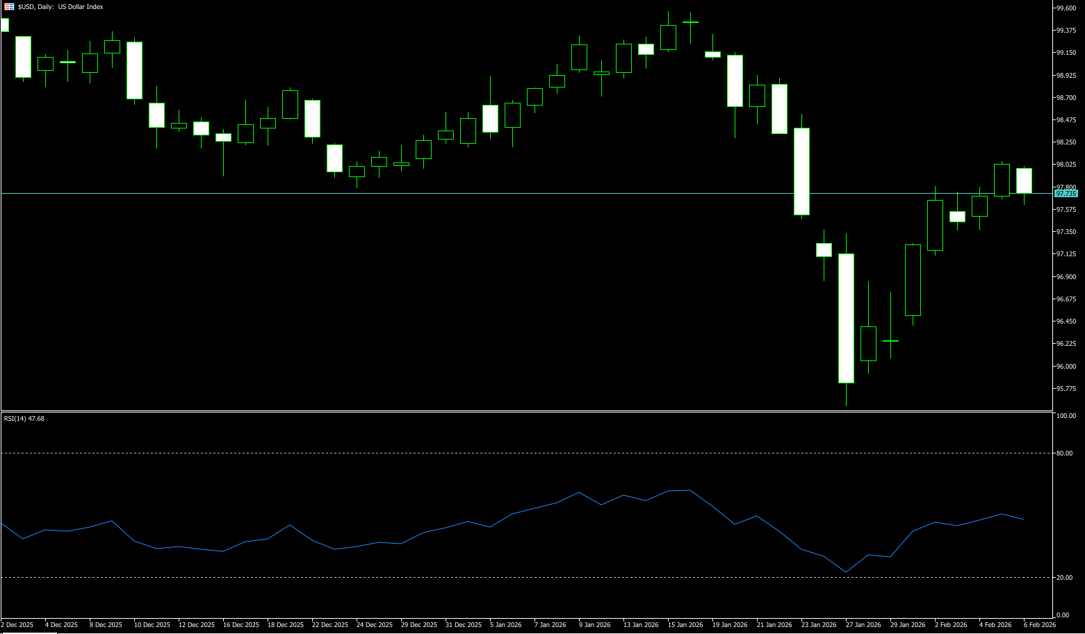 The US dollar index traded slightly below 98 last week, near a two-week high, as a broad sell-off in stocks, commodities, and cryptocurrencies boosted demand for the currency. The dollar has risen sharply since President Donald Trump nominated Kevin Warsh as the next Federal Reserve Chairman, as Warsh favors a smaller balance sheet and a more cautious approach to policy easing. The dollar index generally trended upwards last week, supported by fundamental factors such as the delayed expectation of a Fed rate cut and a dovish decision from the Bank of England. Technically, the short-term rebound momentum is strengthening but has not yet broken through key resistance, remaining in a range-bound pattern. US economic data: Marginal improvements in US economic data provided some support for the dollar. However, January's ADP private sector employment increased by only 20,000, far below market expectations of 45,000, indicating a significant slowdown in the labor market, which limited the dollar index's rebound. CME interest rate futures data showed an increased probability of the Fed holding rates steady in March, supporting the dollar index's rebound. On the other hand, the Fed is still in a rate-cutting cycle, and further declines in the federal funds rate will weaken the yield advantage of dollar assets. Meanwhile, structural factors such as the widening US government fiscal deficit and the continued progress of global "de-dollarization" make it difficult to fundamentally change the medium- to long-term weak trend of the US dollar.